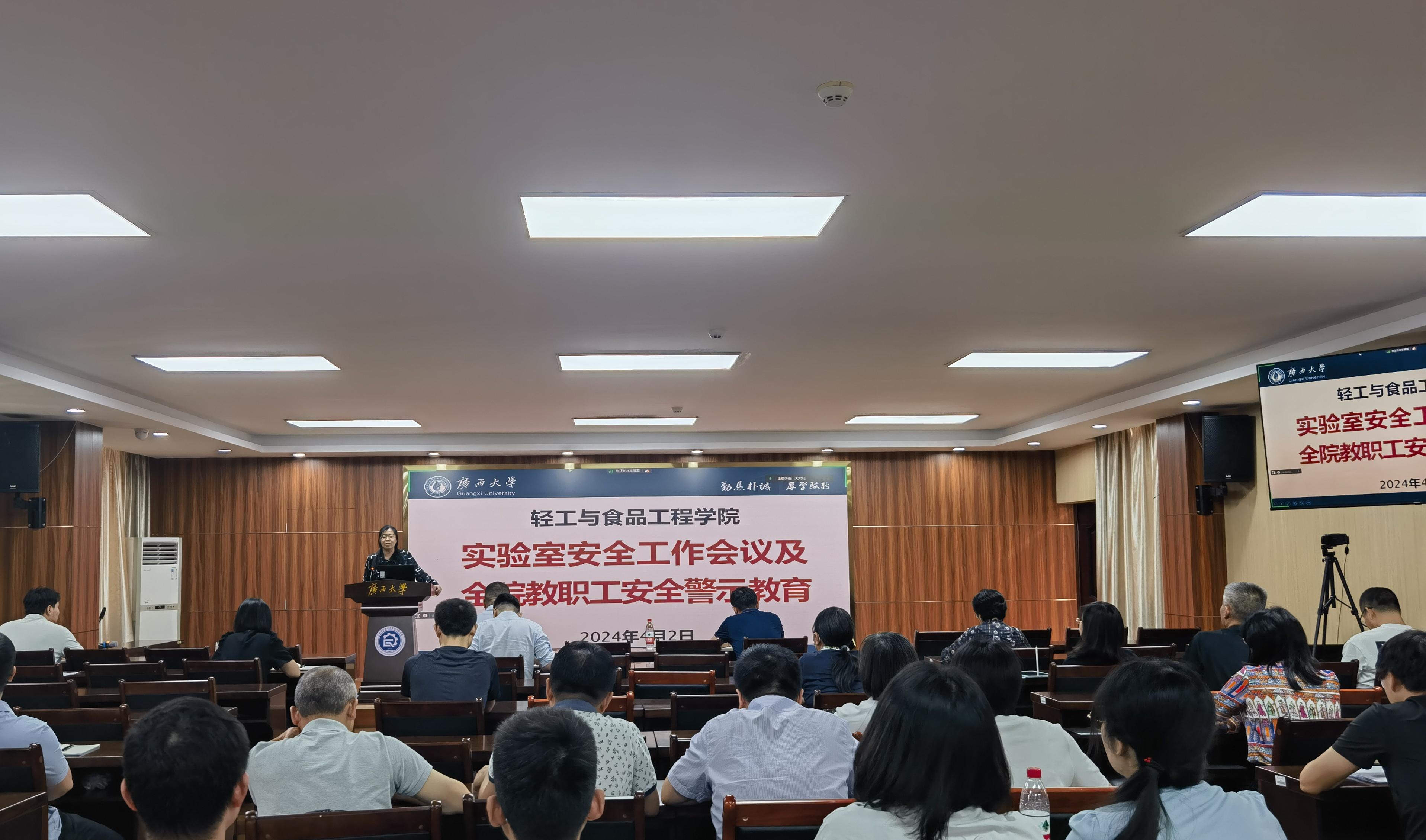 为总结3月29日216实验室起火事件的教训和现有实验室安全管理中的不足,提高学院师生安全意识,进一步压实责任,公司于2024年4月2日下午组织召开了全体教职工参加的实验室安全工作会议,对全院教职工进行安全警示教育,布置全院实验室安全隐患排查和整改工作,并邀请国实处甘正华副处长做“实验室安全管理责任体系解读”专题报告。公司党委书记姜玮主持会议,经理覃程荣及全体领导班子成员出席会议,全院教职工参会。