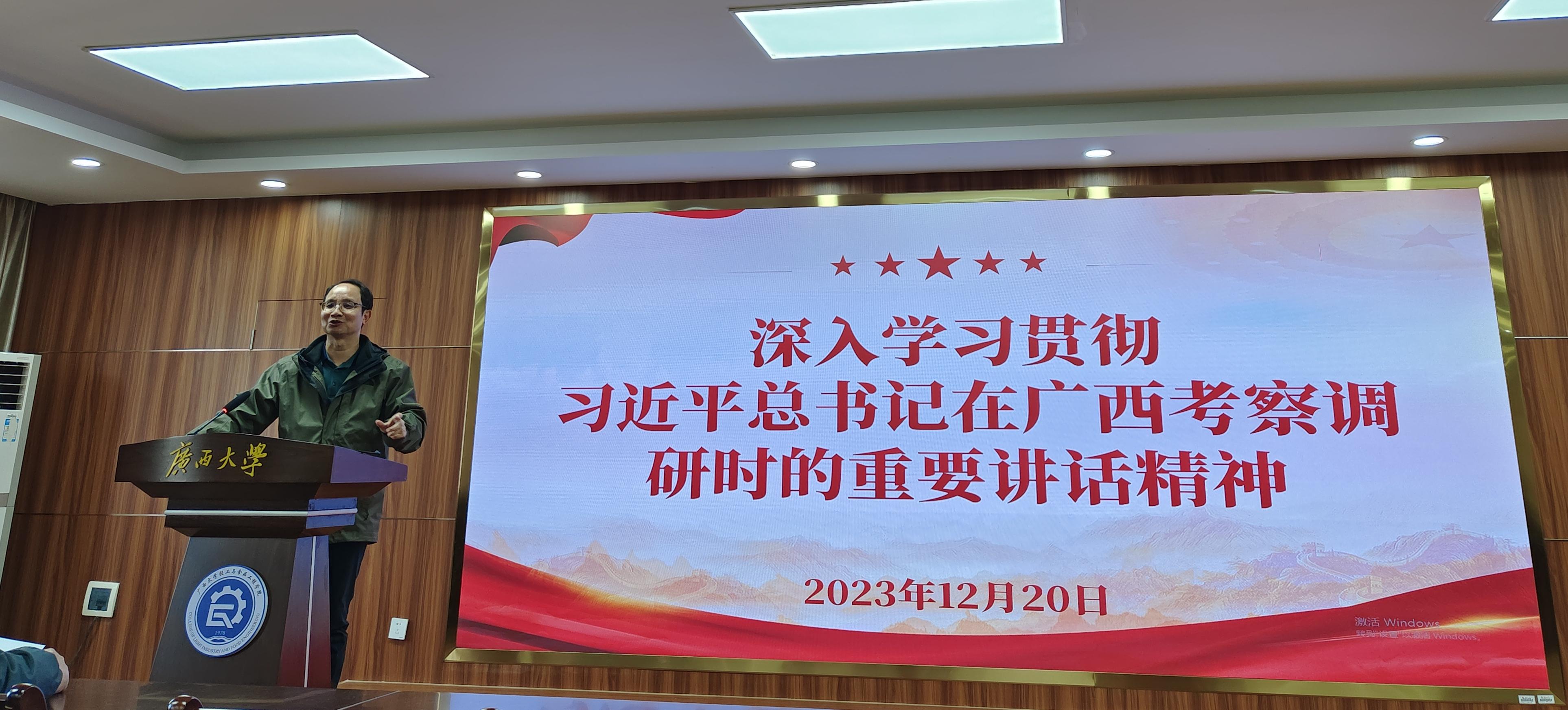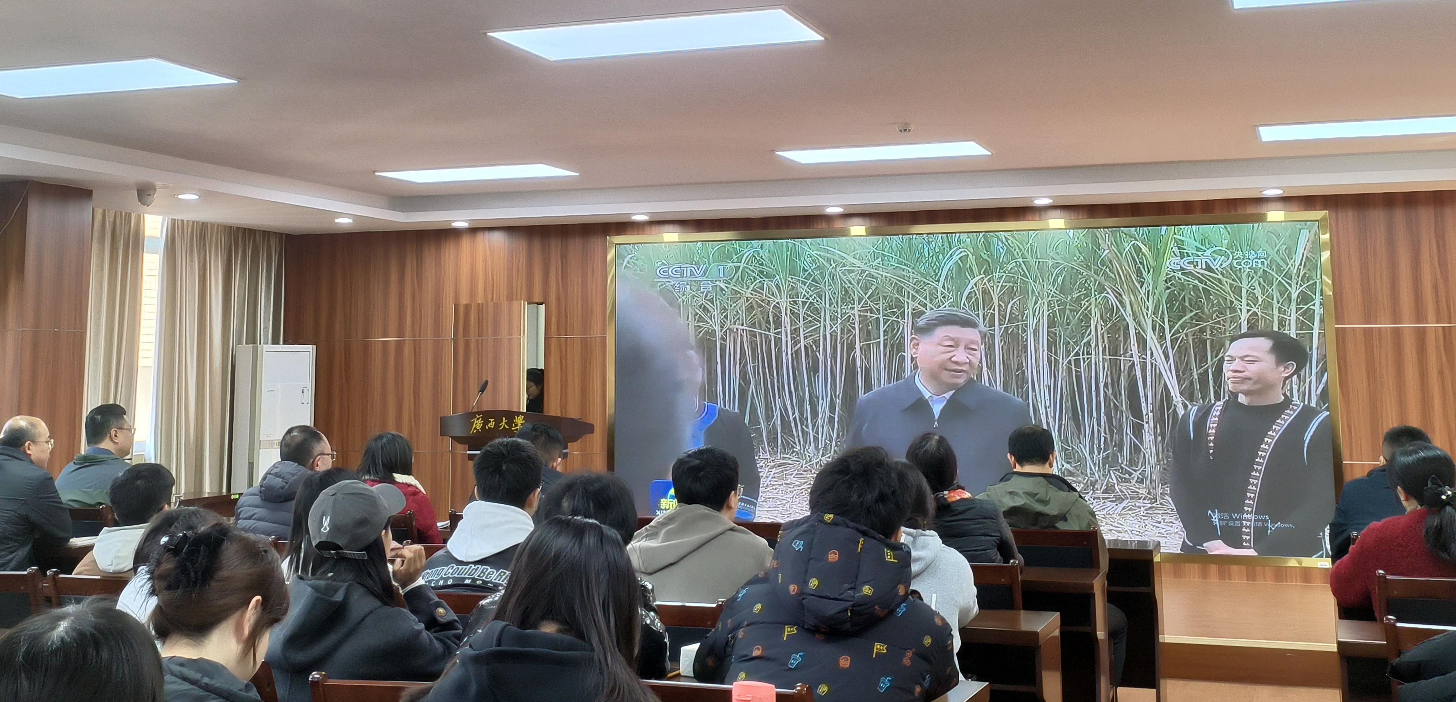 12月14日,习近平总书记在广西来宾市考察调研时强调,我国糖业面临激烈的国际竞争,要按照高端化、智能化、绿色化要求,加大科技创新力度,延伸产业链、提高附加值,不断提质、降本、增效,推动高质量发展。12月20日,糖业及综合利用教育部工程研究中心组织太阳成集团tyc41183、太阳成集团tyc41183甘蔗与制糖产业学院的制糖领域的教师及制糖工程专业研究生,学习习近平总书记重要讲话精神。