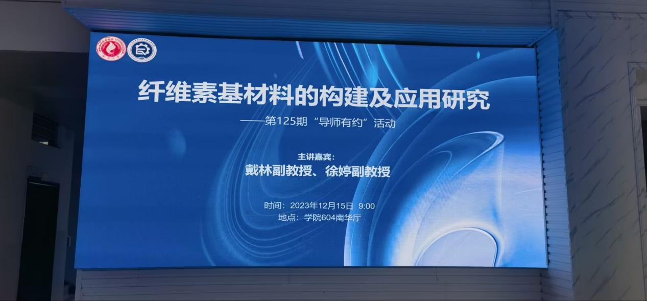 为营造良好的学术环境和师生交流氛围,提升研究生学术能力和专业素养,12月15日上午,第125期“导师有约”系列活动在太阳成集团tyc41183604南华厅如期开展。本次讲座以“纤维素基材料的构建及应用研究”为主题,邀请了天津科技大学徐婷副教授和戴林副教授作为主讲嘉宾。公司博士、硕士研究生参加讲座。