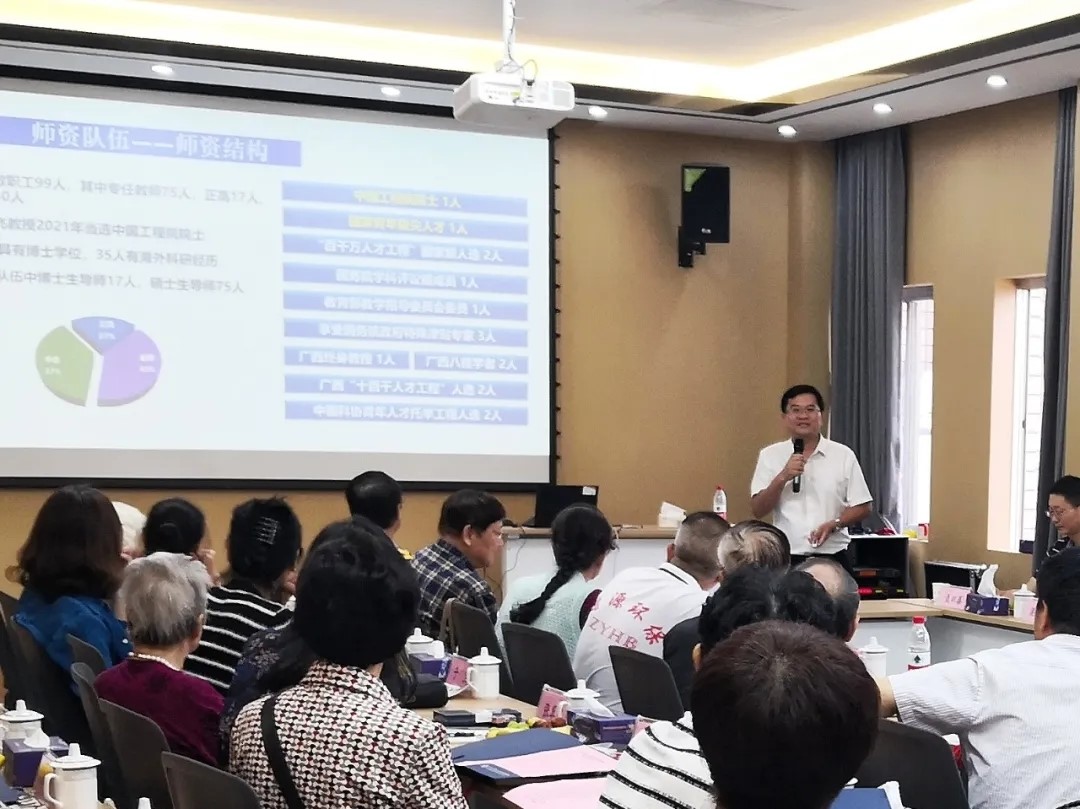 覃程荣和老前辈们共同回顾了近十年来学院各项事业的新成就,重点汇报了学院在团队队伍构建、学科专业建设、教学水平提高、科研水平提升、实验室建设、员工培养等方面的情况,并介绍了学院未来的发展规划。他表示学院的发展离不开每一位退休老前辈的辛勤耕耘,希望老前辈不断关注学院的新发展。