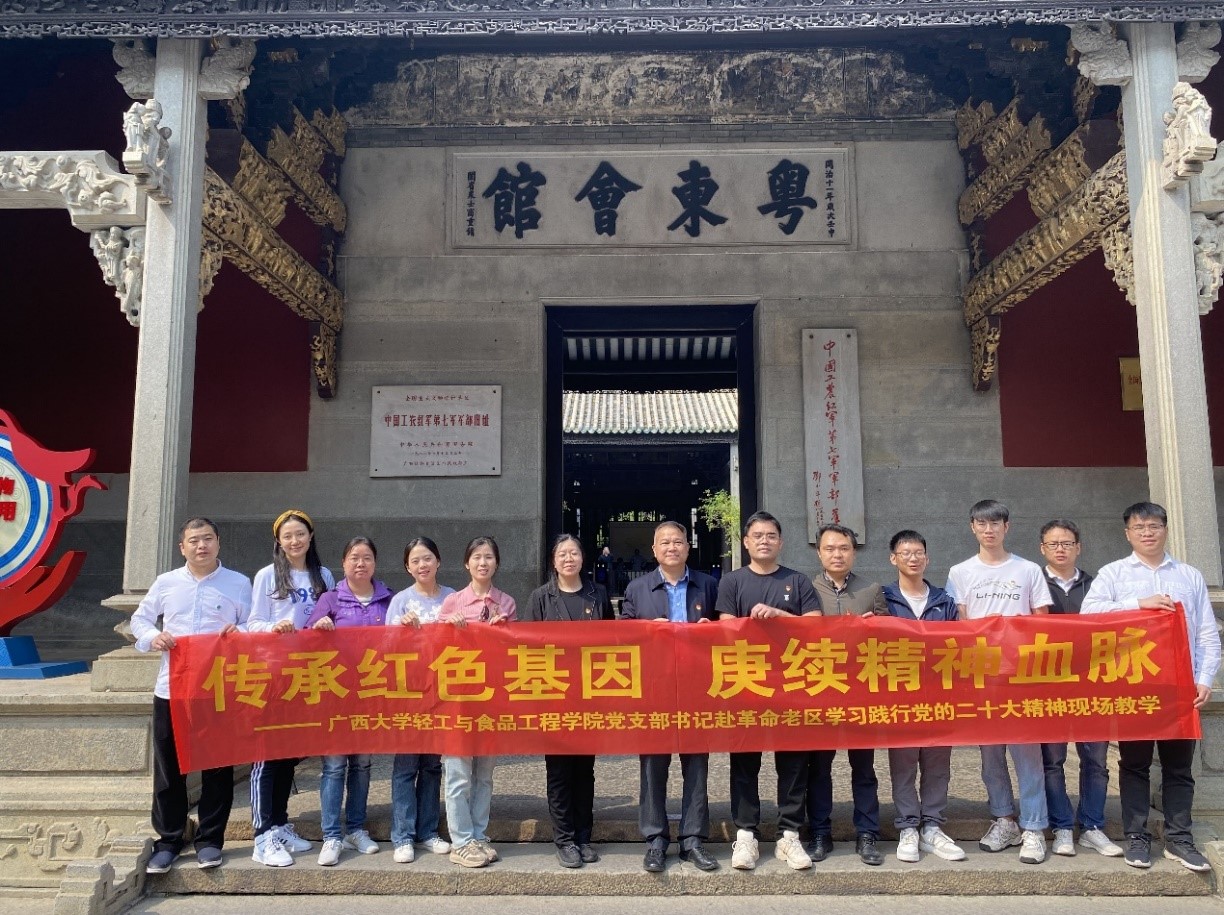 为全面学习贯彻党的二十大精神,提升党支部书记综合素质能力, 3月9日-10日,公司根据党支部书记培训班的教学要求,组织各支部书记赴百色起义纪念馆和中国工农红军第七军军部旧址(粤东会馆)开展现场教学,并到百色学院农业与食品工程学院进行座谈交流。
