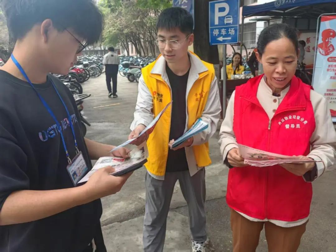 活动现场,身着黄色马甲的小青柠志愿者们热情满满,手持展板和宣传手册,向师生介绍员工公寓雷锋月活动内容,引导大家前往发型修剪、服装缝补、自行车配件检修、眼镜清洗等活动区域体验暖心服务。