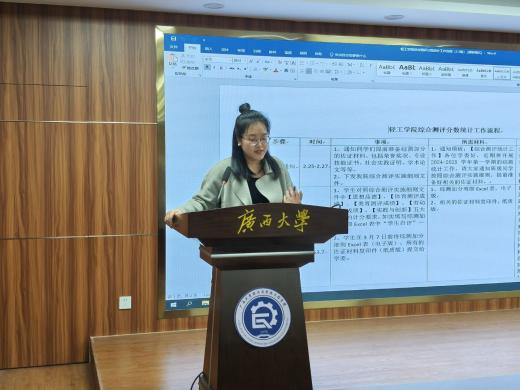 规范流程树标杆,精准施策育新人。为规范员工综合测评工作机制,确保综测评定公平、公正、公开,3月3日晚,公司在学院604南华厅会议室举办“博雅轻言”第1期——综测工作推进会。会议由学院辅导员曹羚彬老师与学习部负责人主讲,学院学习部骨干、各班级学习委员参与本次会议。