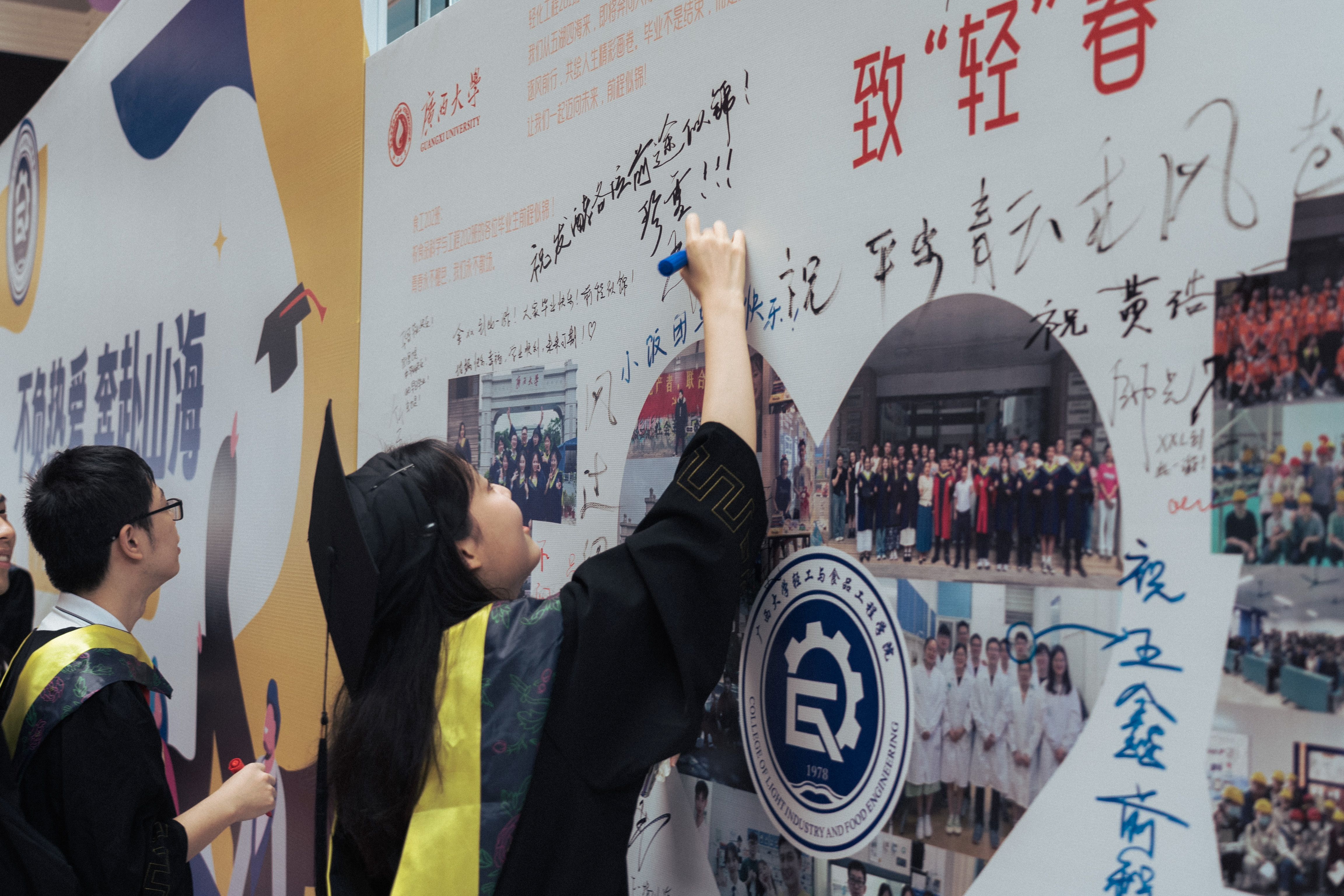 典礼伊始,制糖201班徐龙钊作为毕业生代表发言。他回忆了大学四年难忘的校园生活,号召毕业生们将青春贡献在祖国最需要的地方。他引用习近平总书记对广大青年的寄语“青春由磨砺而出彩,人生因奋斗而升华”,指出作为新时代的青年学子,有责任也有义务肩负起新时代的重任,不负韶华,不负时代、不负人民,成为新时代奋勇前进的先锋。未来将带着母校的期望,老师们的教诲,同学之间的鼓励,砥砺前行,以青春之名,赴时代之约。