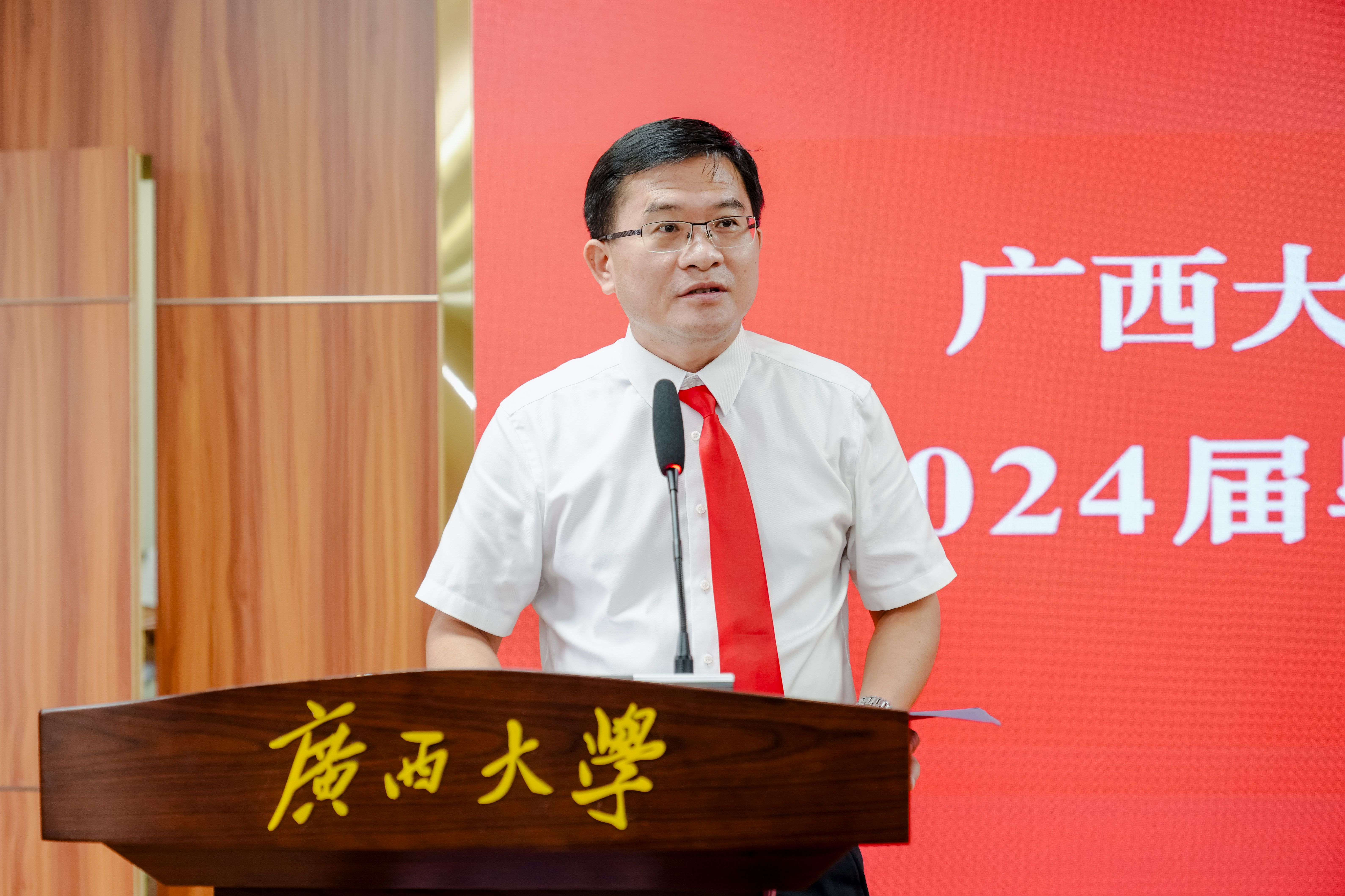 覃程荣经理在给毕业生们的临别寄语中,勉励大家要珍惜机遇,把握未来。他强调,新时代是奋斗者的时代,每一个青年都应该成为新时代的奋斗者。他希望毕业生们能够勇敢地追逐自己的梦想,不畏艰难险阻,用实际行动诠释青春的意义和价值,并对毕业生们提出了三点希望和嘱托:一是要保持勤奋好学的精神,不断学习和掌握新知识、新技能,以适应不断变化的社会需求。二是要锻造强健的体魄和坚韧的内心,时刻保持积极向上的心态,在人生旅途中,无论遭遇何种挑战与困难,都应坚守不屈不挠的毅力与勇气,勇往直前。三是要勇于探索和创新,敢于尝试新事物、新思路,不断拓展自己的视野和领域,敢于追求自己的梦想和目标,勇于承担责任和使命,为社会的发展和进步贡献自己的力量。