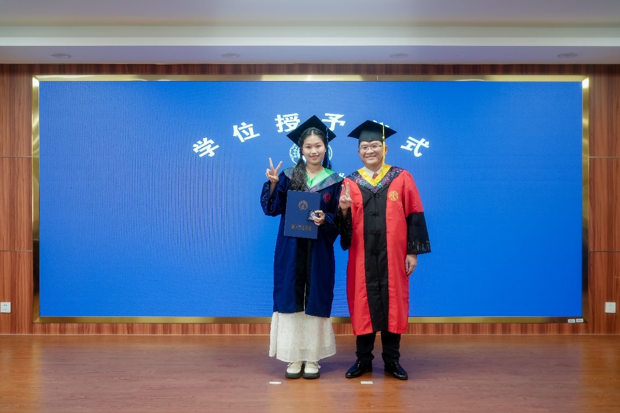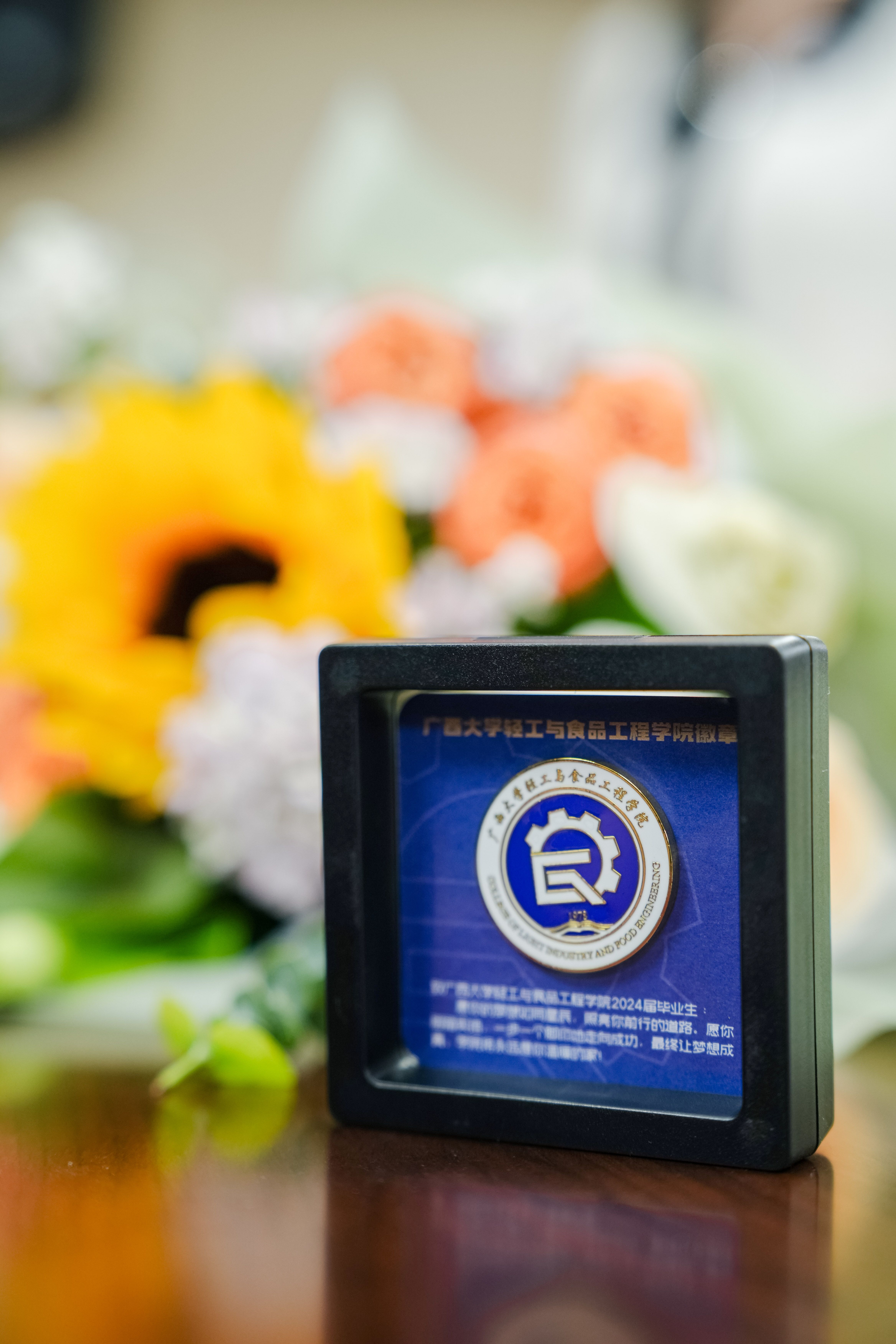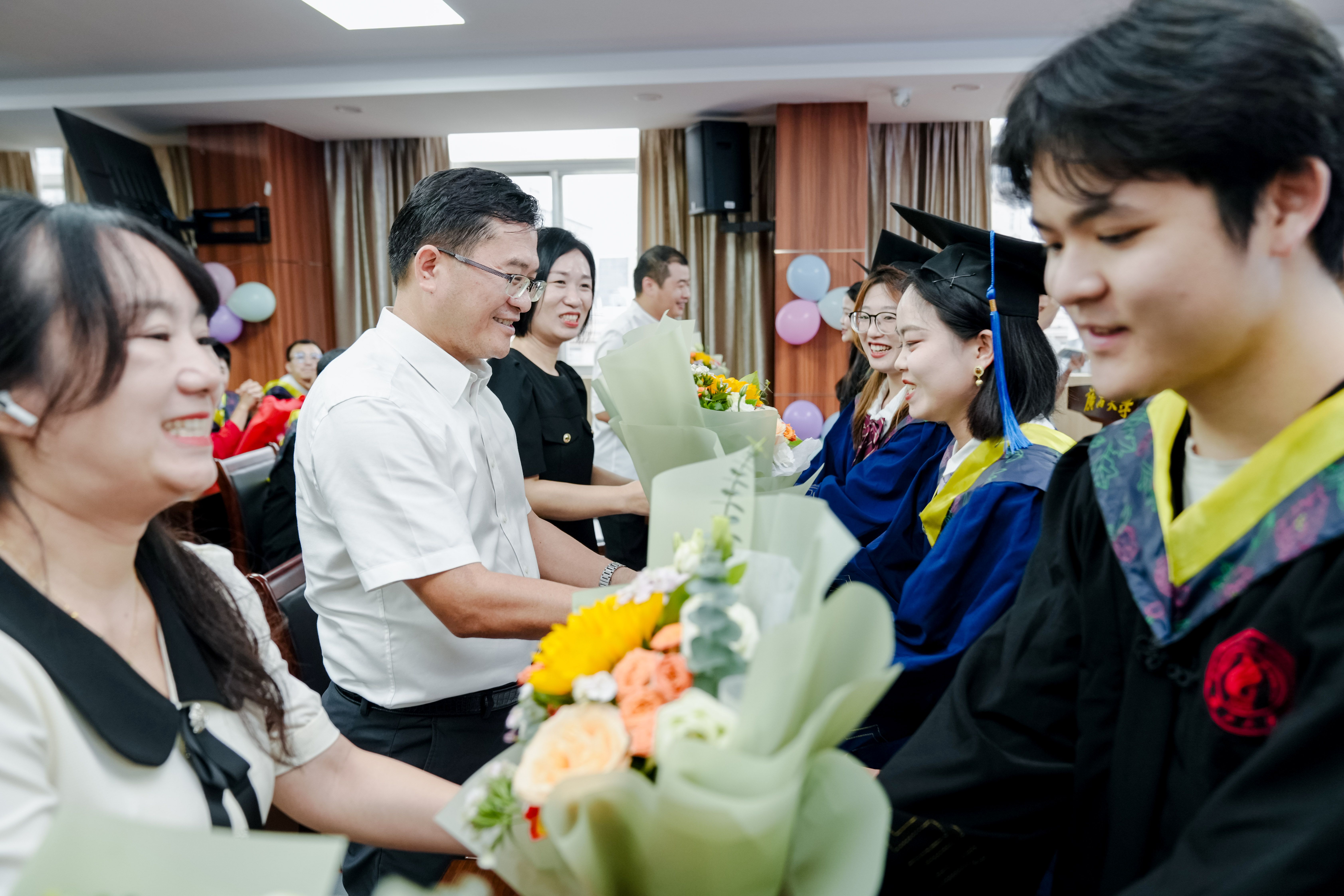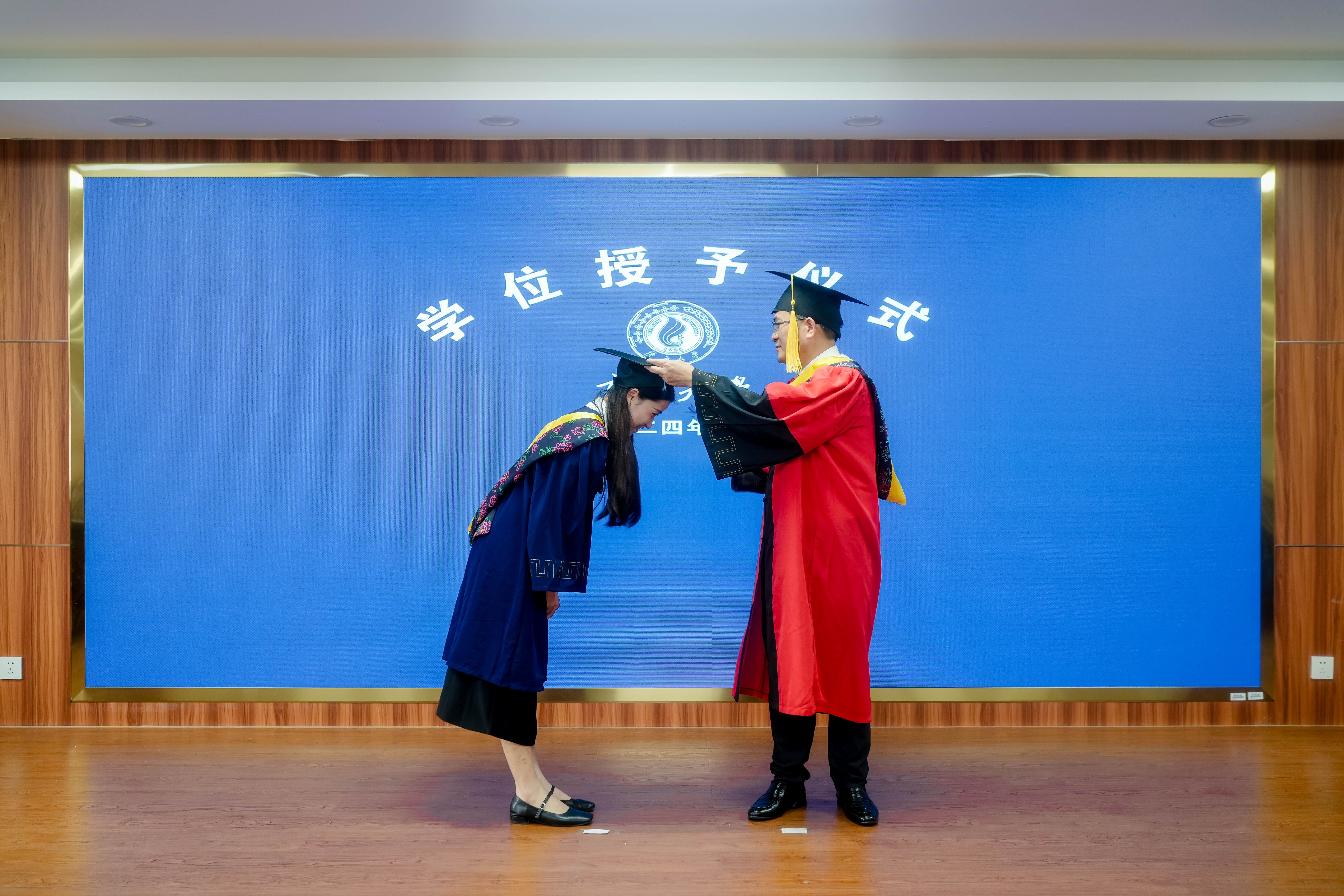 随后,覃程荣经理庄重地为每一位毕业生授予学位,行拨穗礼,并赠予学院徽章。这一刻,不仅象征着毕业生们圆满完成了学业,更预示着他们即将踏上崭新的人生旅程,开启辉煌的未来篇章。