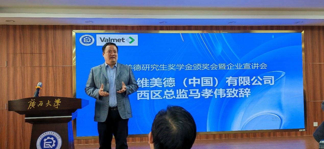颁奖会上,维美德(中国)有限公司中华西区总监马孝伟、人事专员林丹敏详细介绍了维美德(中国)有限公司的基本情况、企业愿景和行业发展现状,获得了同学们的积极反馈。企业方与同学们的有效沟通,进一步促进校企合作的融合发展,不仅为企业的人才培养提供了沃土,更为同学们的就业发展提供了指导方向。
