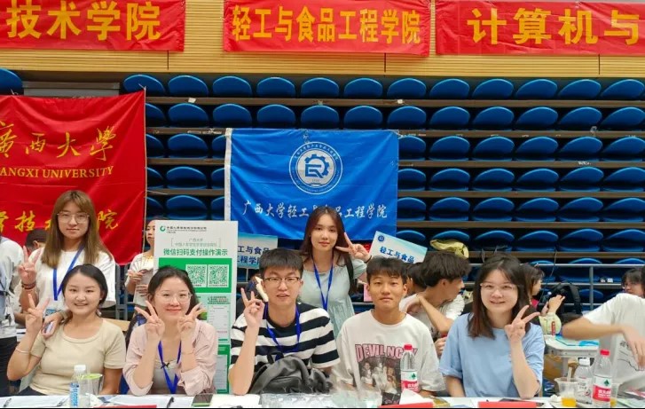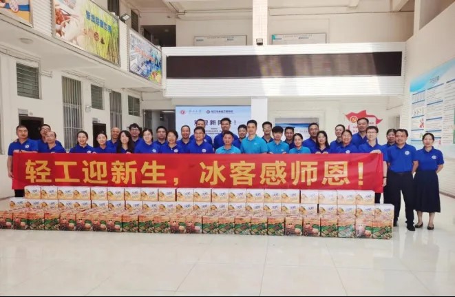 在迎新期间,公司员工企业广西冰客食品有限公司慷慨捐赠果汁饮料,为新生和教职工送去清凉与关怀,彰显了员工企业的社会责任感与对母校的深厚情谊,为炎炎夏日中的迎新工作增添了一抹清凉,增强了新生的归属感和自豪感。